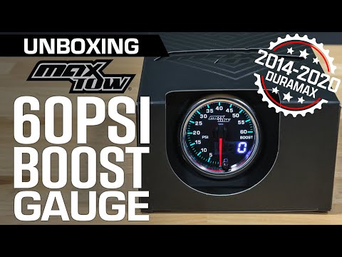 - MaxTow Match 60 PSI Diesel Boost Gauge Kit for 2014-2020 6.6L Duramax - Electronic Sensor - Black Dial | White LED - 2-1/16"
